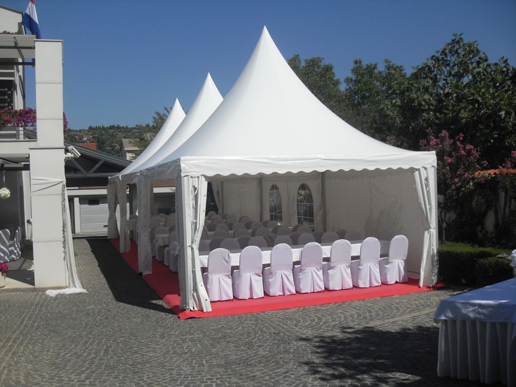 Nudimo najkvalitetnije njemačke šatore marke Röder, koje na lokaciji po Vašem izboru postavlja naše stručno osoblje. Naše uspješno dugogodišnje poslovanje je garancija vrhunske kvalitete usluge i opreme po pristupačnim cijenama.